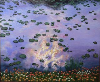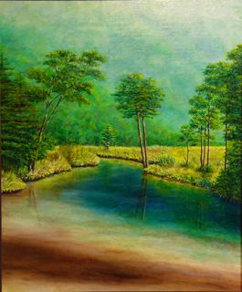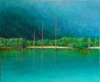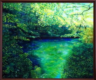 強い緑のパワーを描いてみたく、新緑の軽井沢、雲場池の油彩を作成