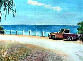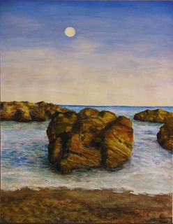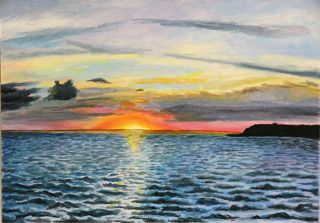 油彩に初挑戦してみました。大洗海岸は水彩で描いたあとに6号のボードに、