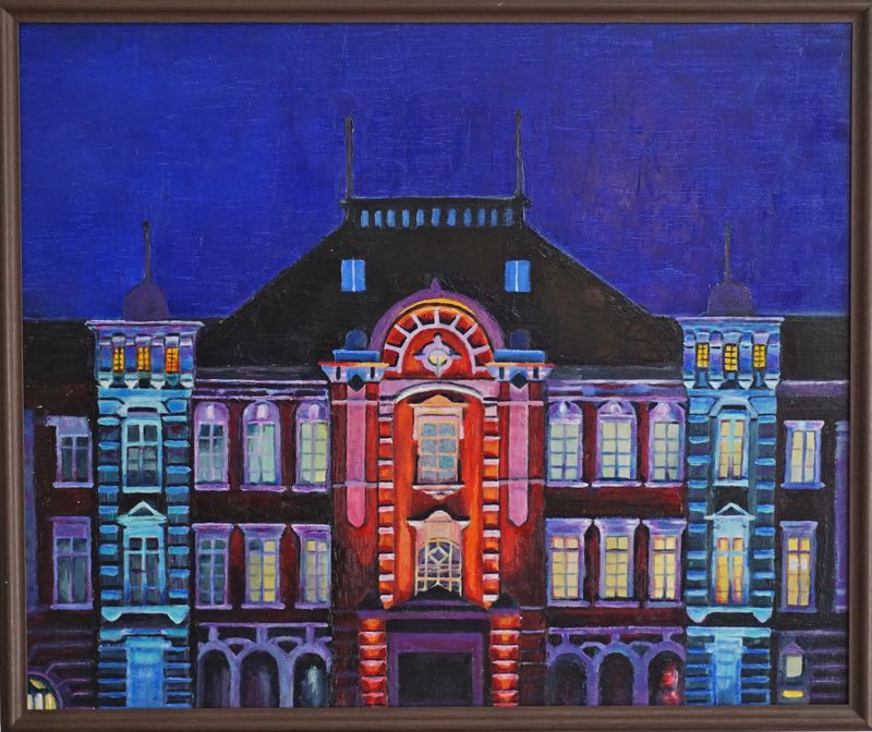 薄暗くなった東京駅のライトアップを絵に表現してみたかった。